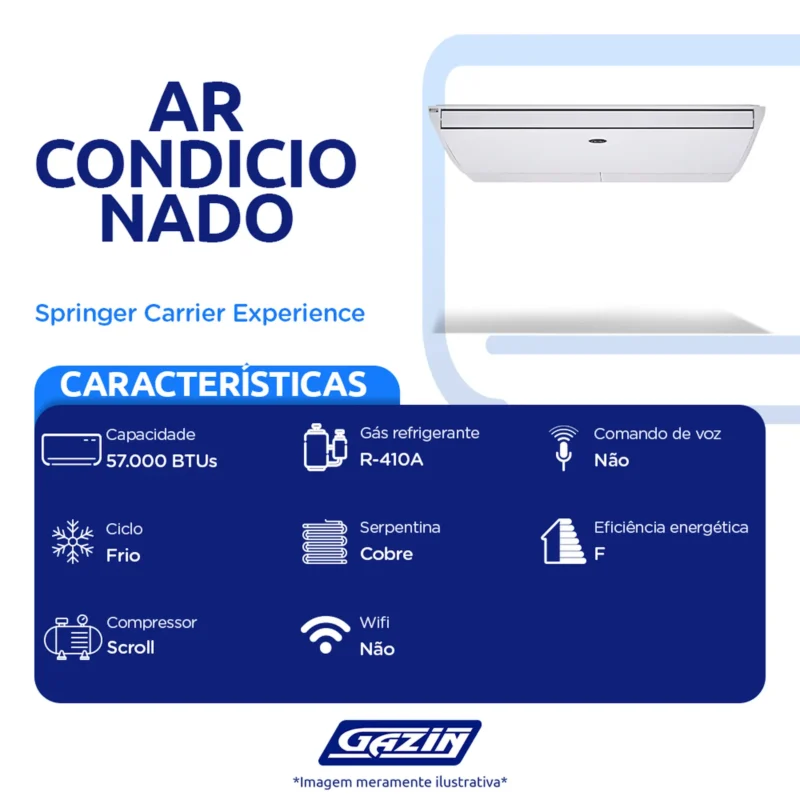 Em até 1x de R$3.991,00 sem jurosEm até 12x de R$377,39 com juros À vistaR$3.591,90no PixAr Condicionado 57.000 BTUs Experience Carrier Frio – 220 Volts