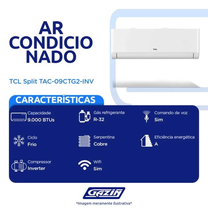 Em até 1x de R$1.822,60 sem jurosEm até 12x de R$172,34 com juros À vistaR$1.640,34no PixAr Condicionado 9.000 BTUs Inverter T-Pro 2.0 TAC-09CTG2-INV TCL Frio – Branco – 220 Volts