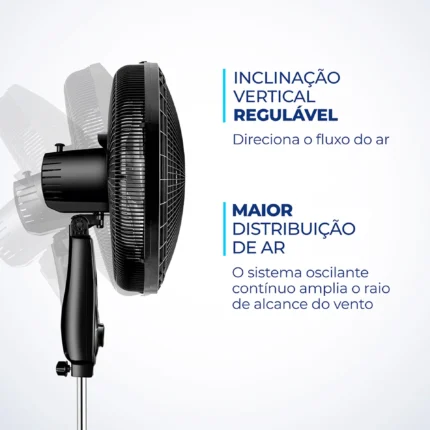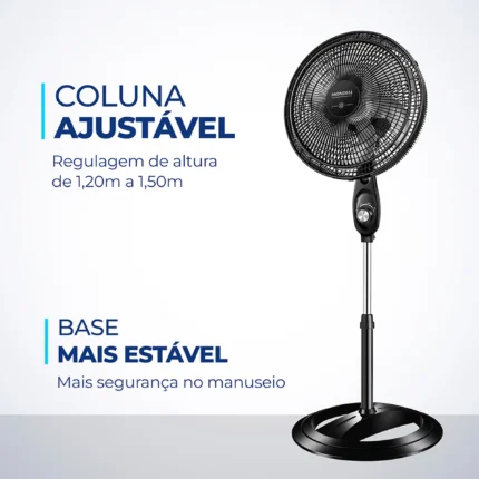 Em até 1x de R$179,40 sem jurosEm até 12x de R$16,96 com juros À vistaR$161,46no PixVentilador de Coluna Mallory Chronos 40cm 6 Pás 3 Velocidades 140W – Preto – 110 Volts