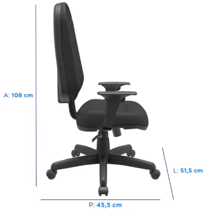 Cadeira Giratória Plaxmetal Presidente Rodízios Pistão a Gás e Braços – Preto