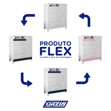 Cômoda 1 Porta Bater 4 Gavetas MDP e MDF Turqueza Albatroz – Flex