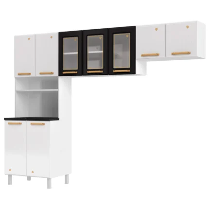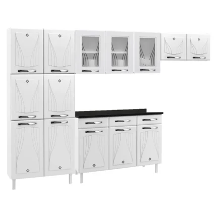 Cozinha Modulada 3 Peças 9 Portas Aço Diamante Telasul – Branco/Preto