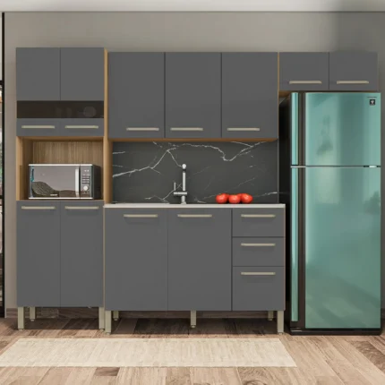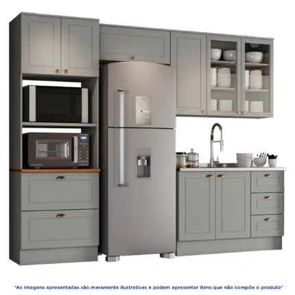 Cozinha Modulada 4 Peças 8 Portas 5 Gavetas Americana Henn – Cinza
