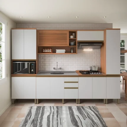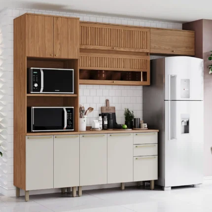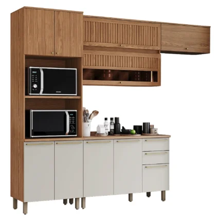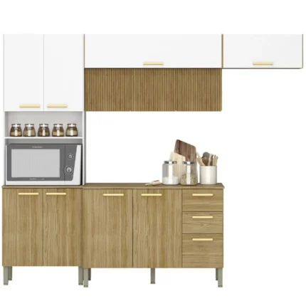 Cozinha Modulada 6 Peças 12 Portas 3 Gavetas Macadamia Telasul – Freijo/Branco