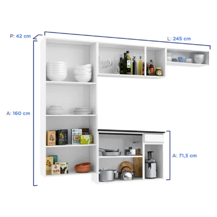 Cozinha Modulada 4 Peças 14 Portas 2 Gavetas Star Telasul – Branco