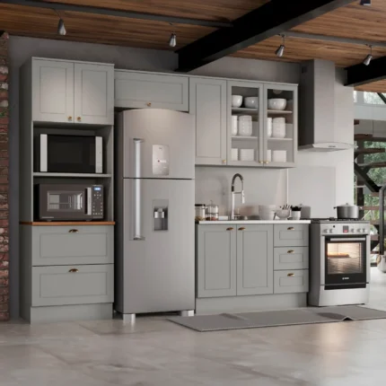 Cozinha Modulada 5 Peças 11 Portas 5 Gavetas Americana Henn – Cinza