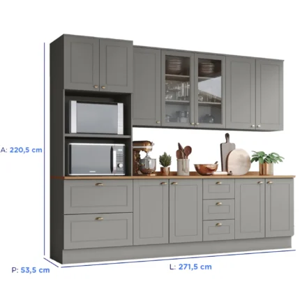 Cozinha Modulada 4 Peças 12 Portas 2 Gavetas Versalhes Kit’s Paraná – Freijo gris