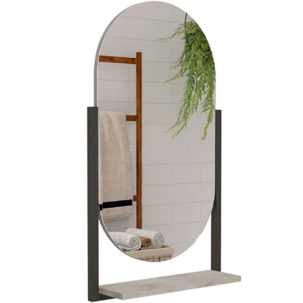 Espelheira Ori Metaflon MGM 78×44 cm Com Prateleira e Estrutura em MDF – Cimento