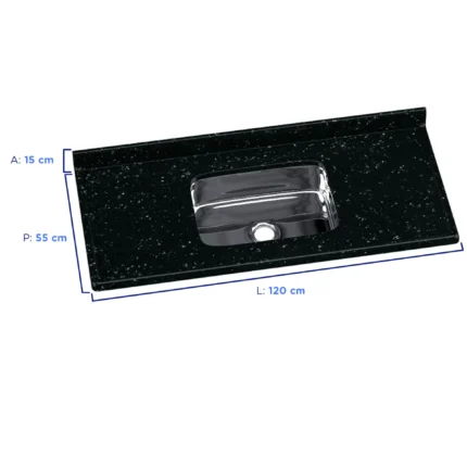 Em até 1x de R$407,55 sem jurosEm até 12x de R$38,54 com juros À vistaR$366,80no PixPia de Mármore Sintético com Cuba de Aço Inox 120cm Rorato Roralit – Preto
