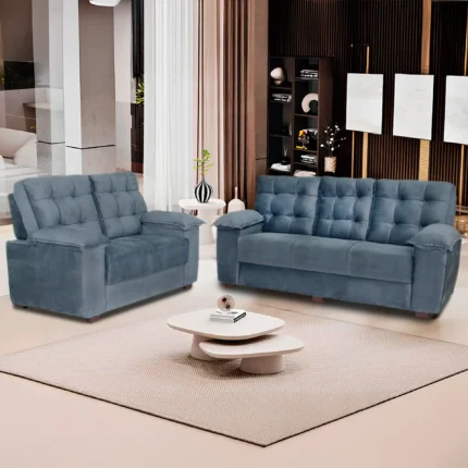Em até 1x de R$687,38 sem jurosEm até 12x de R$65,00 com juros À vistaR$618,64no PixSofá Fixo 2 e 3 Lugares Revestimento Veludo Lisboa Paraná – Cinza