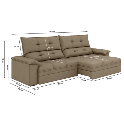 Em até 1x de R$800,48 sem jurosEm até 12x de R$75,69 com juros À vistaR$720,43no PixSofá Retrátil 2 Lugares 280cm Takei Daniela – Marrom Claro – Boucle