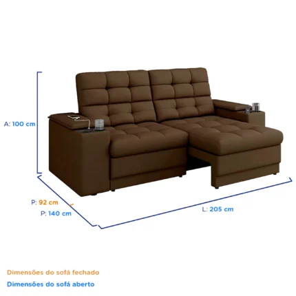 Em até 1x de R$1.976,33 sem jurosEm até 12x de R$186,88 com juros À vistaR$1.778,70no PixSofá Retrátil e Reclinável 2 Lugares Kansas Besthouse – Marrom