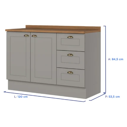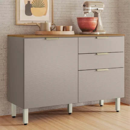 Em até 1x de R$234,65 sem jurosEm até 12x de R$22,19 com juros À vistaR$211,19no PixBalcão com Tampo 2 Portas 3 Gavetas 120cm Americana Henn – Cinza