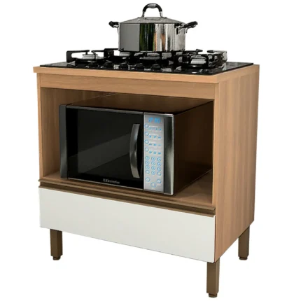 Balcão com Tampo 1 Gaveta 80cm Macadamia Telasul – Freijo/Branco