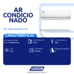 Após um dia longo, você merece descansar da melhor forma e, para isso, uma temperatura agradável é indispensável! Tudo isso, graças ao Ar Condicionado Split Inverter TCL, que possui capacidade de 9.000 BTUs, compressor inverter e muitas outras tecnologias para transformar seu dia a dia. Confira mais detalhes: Aliado para seu dia a diaEquipado com a tecnologia Inverter, o modelo utiliza um compressor rotativo, garantindo operação silenciosa, economia e maior durabilidade. O filtro Silver Ion é um diferencial que assegura um ambiente saudável, combatendo bactérias e impurezas no ar. Além disso, sua instalação flexível permite que o aparelho se adapte facilmente às necessidades do espaço, seja em casa ou no trabalho.Design e eficiênciaCom design moderno, o Ar Condicionado TCL não atrapalha a harmonia do ambiente enquanto oferece funcionalidades avançadas e praticidade. Com potência de 812W, ele proporciona resfriamento eficiente e rápido, ideal para enfrentar os dias mais quentes com conforto. Invista em tecnologia, eficiência energética e bem-estar com o Split Inverter TCL 9.000 BTUs, um equipamento pensado para transformar sua experiência com climatização.Sobre a marca: qualidade TCL!A Semp TCL está há 77 anos no mercado, sendo uma empresa que vem revolucionando a trajetória da tecnologia brasileira, uma das maiores fabricantes de TV e a primeira a fabricar aparelhos televisores no Brasil. Hoje é líder global em Android TV. A junção da SEMP e TCL é o melhor de dois mundos, inovando para você. Além disso, a SEMP se preocupa com o esporte brasileiro, patrocinando a seleção masculina e feminina de futebol e o comitê paralímpico brasileiro, apoiando esses atletas que inspiram o Brasil por meio do esporte.