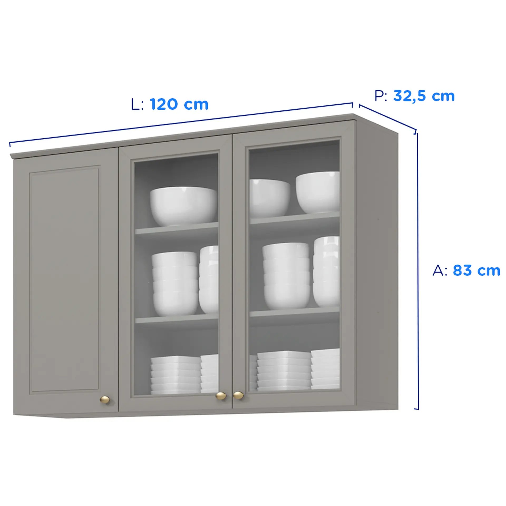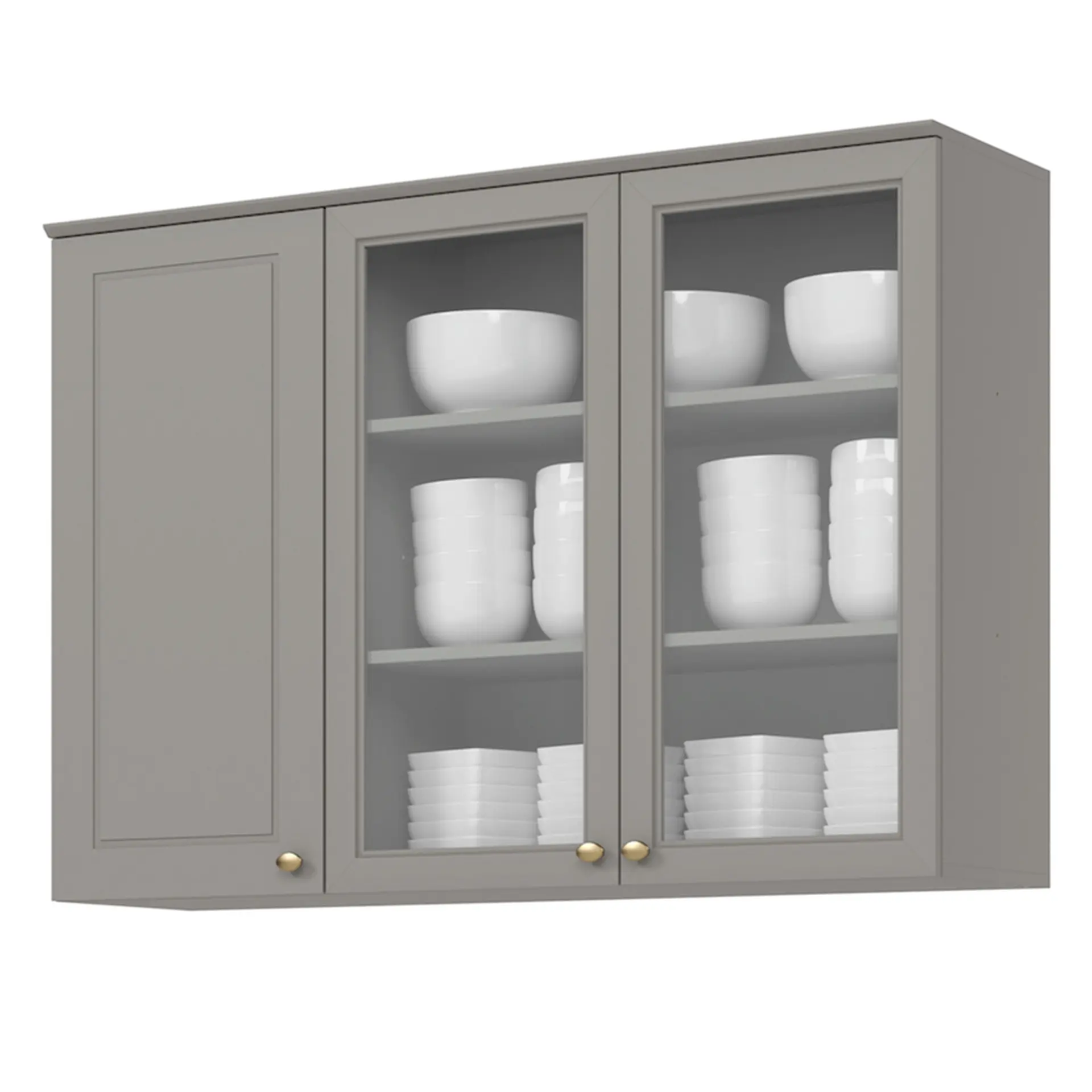 Armário Aéreo 3 Portas com Vidro Americana Henn – Cinza
