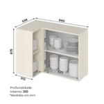 Em até 1x de R$310,67 sem jurosEm até 12x de R$29,38 com juros À vistaR$279,60no PixArmário Aéreo de Canto 1 Porta com Nichos em MDF Connect Henn – Off White