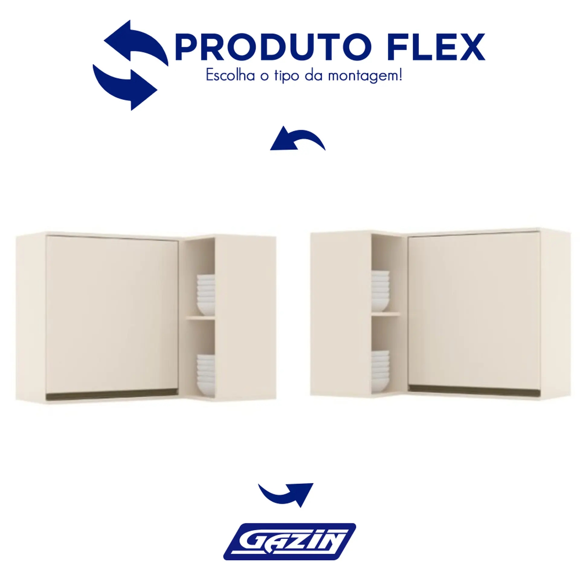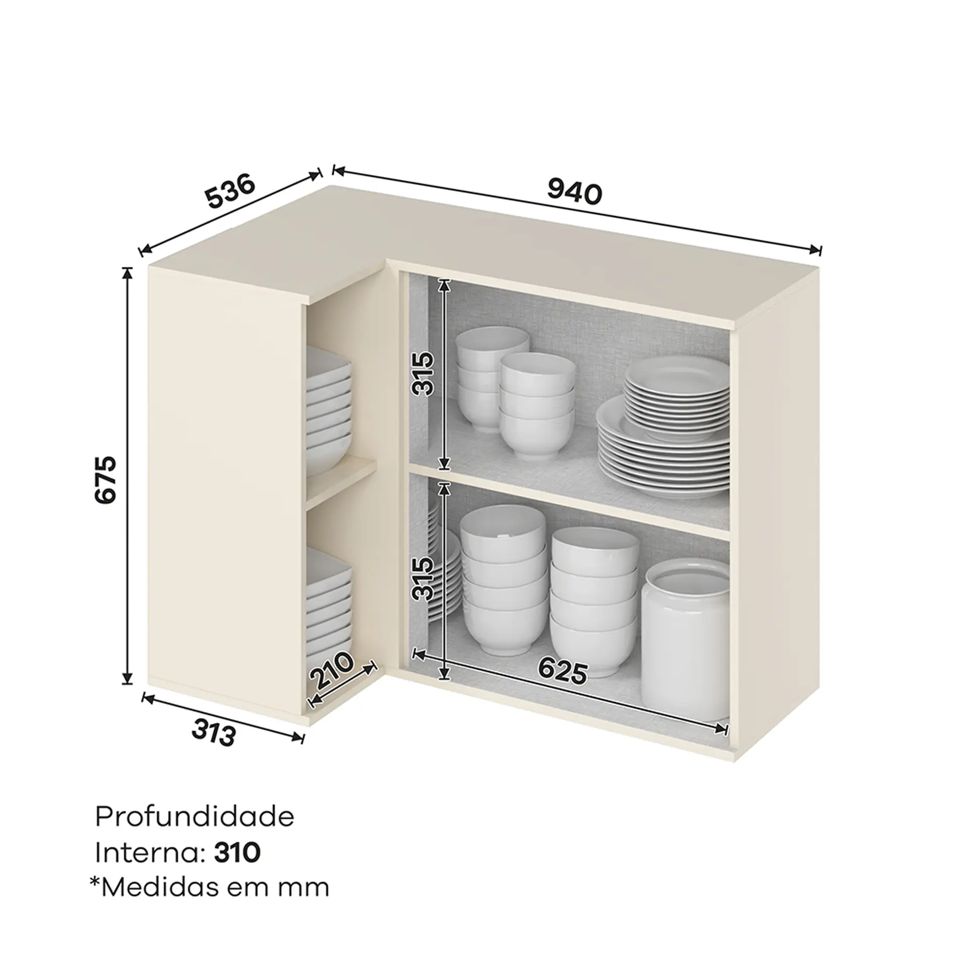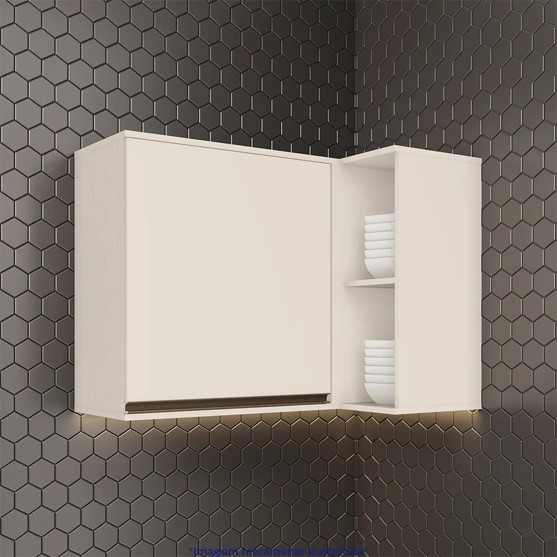 Armário Aéreo de Canto 1 Porta com Nichos em MDF Connect Henn – Off White