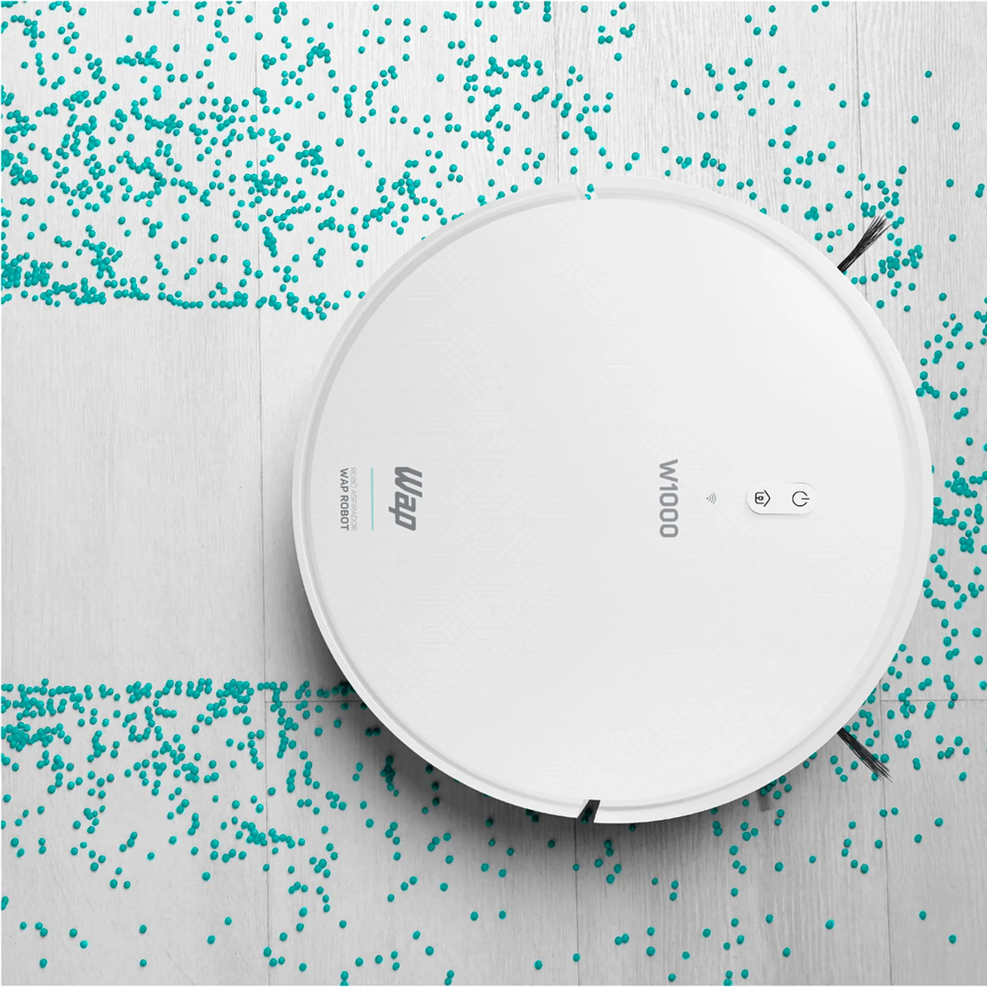 O aspirador robô também é projetado para lidar com diferentes tipos de pisos, incluindo cerâmica, madeira, carpetes e tapetes, adaptando sua potência de sucção de acordo com a superfície que está sendo limpa. Com um filtro HEPA, o WAP W1000 consegue capturar partículas microscópicas de poeira, ácaros e outros alérgenos, promovendo um ambiente mais saudável e confortável para você e sua família.