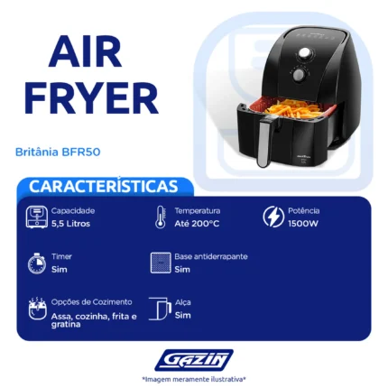 Fritadeira Elétrica Air Fryer Britânia BFR50 5,5L 1500W – 220 Volts