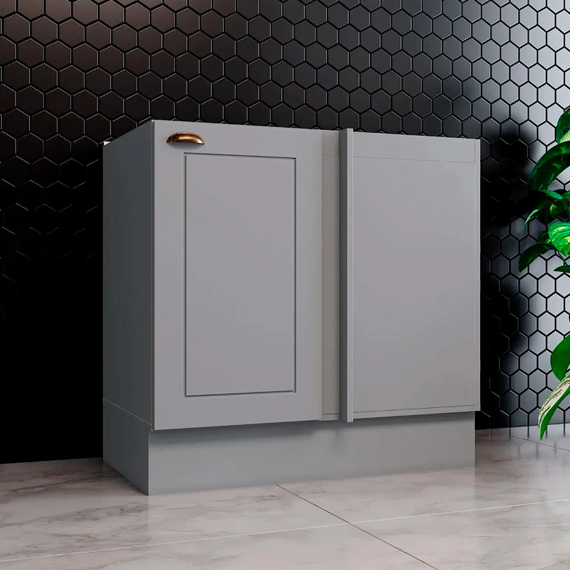 Balcão com Tampo 1 Porta 94 cm Canto Reto Americana Henn – Cinza