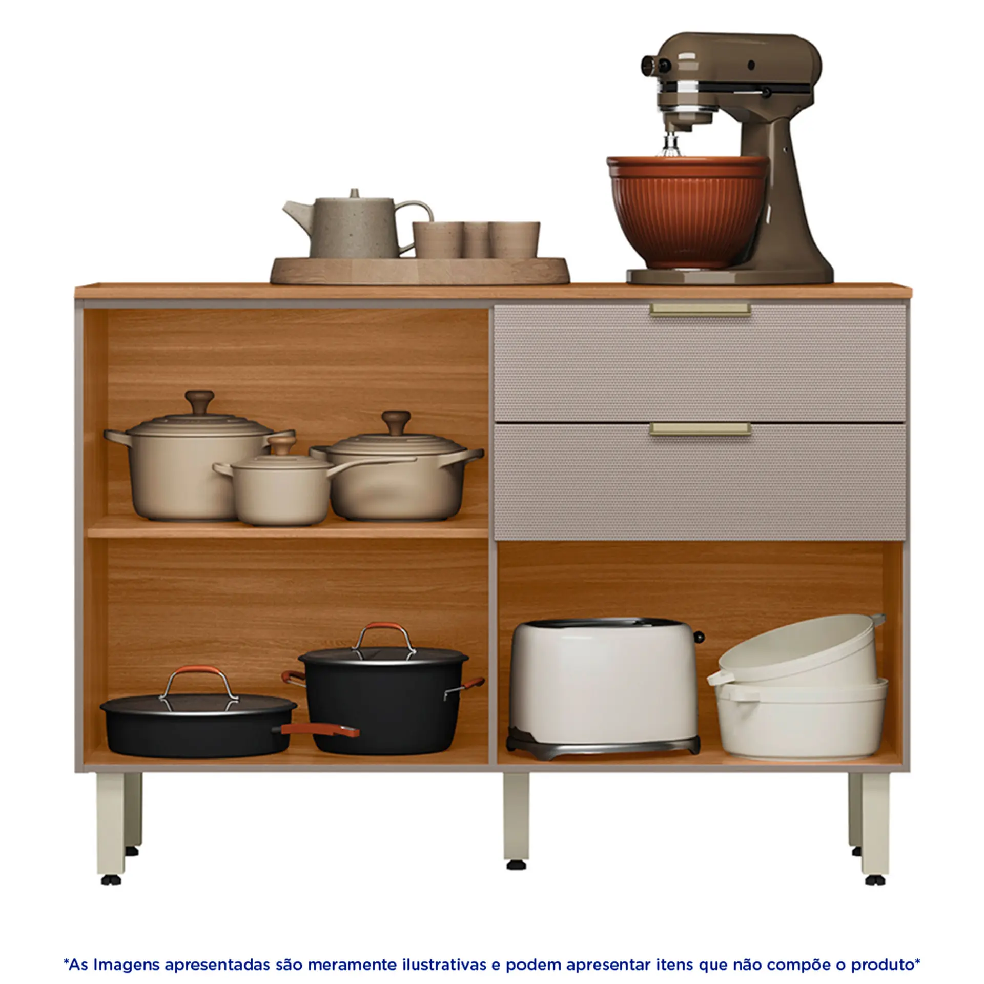 Balcão com Tampo 2 Portas 2 Gavetas 120cm MDP Alba Demóbile – Amendola/Nude Prime TX