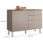 Com 120 cm de largura, o balcão oferece um tamanho intermediário, ideal para quem busca um móvel que otimize o espaço sem comprometer a capacidade de armazenamento. Sua estrutura é feita em MDP, um material resistente, durável e de alta qualidade, que garante estabilidade e resistência ao uso diário, além de ser uma opção econômica e sustentável.