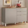 O modelo conta com 2 portas e 2 gavetas, proporcionando um excelente sistema de organização. As gavetas são práticas para guardar itens menores e mais sensíveis, como utensílios de cozinha, ou acessórios de decoração. Já as portas, por sua vez, oferecem um espaço maior para armazenar objetos mais volumosos, mantendo o ambiente sempre organizado e funcional.