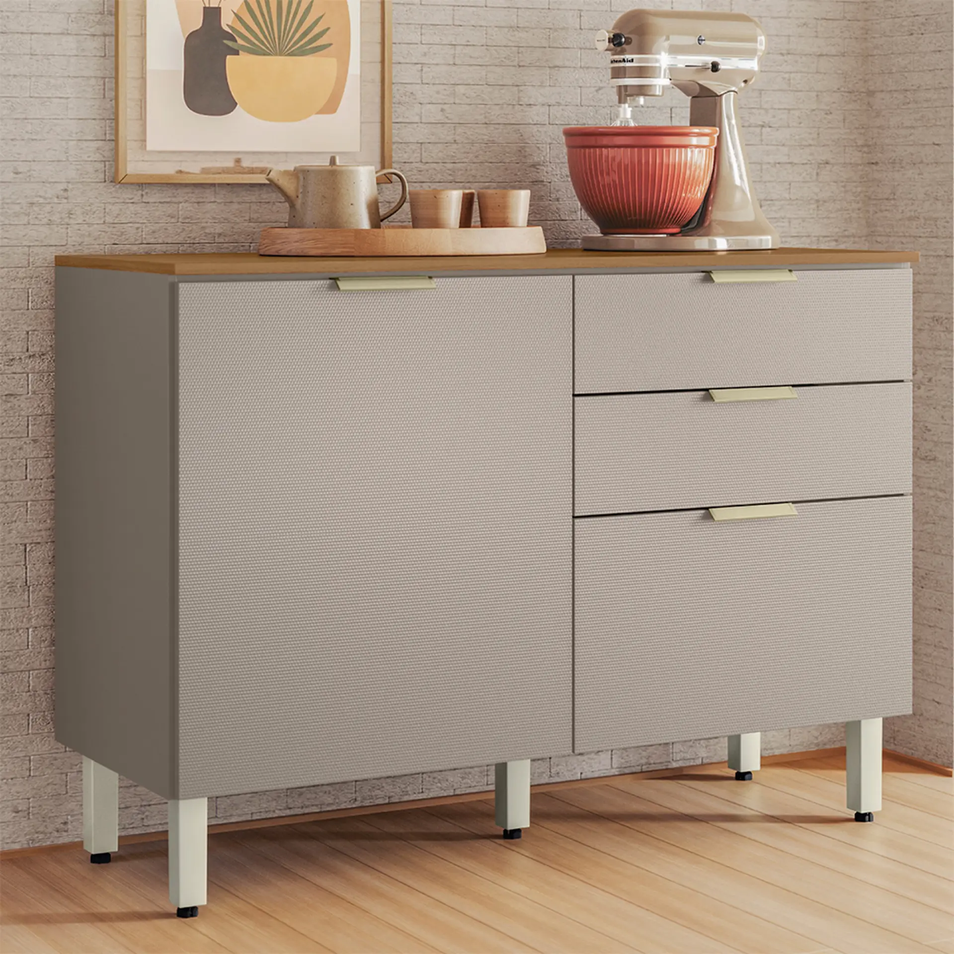 Balcão Com Tampo 2 Portas 1 Gaveta 80cm Simone Nesher - Carvalho Greige