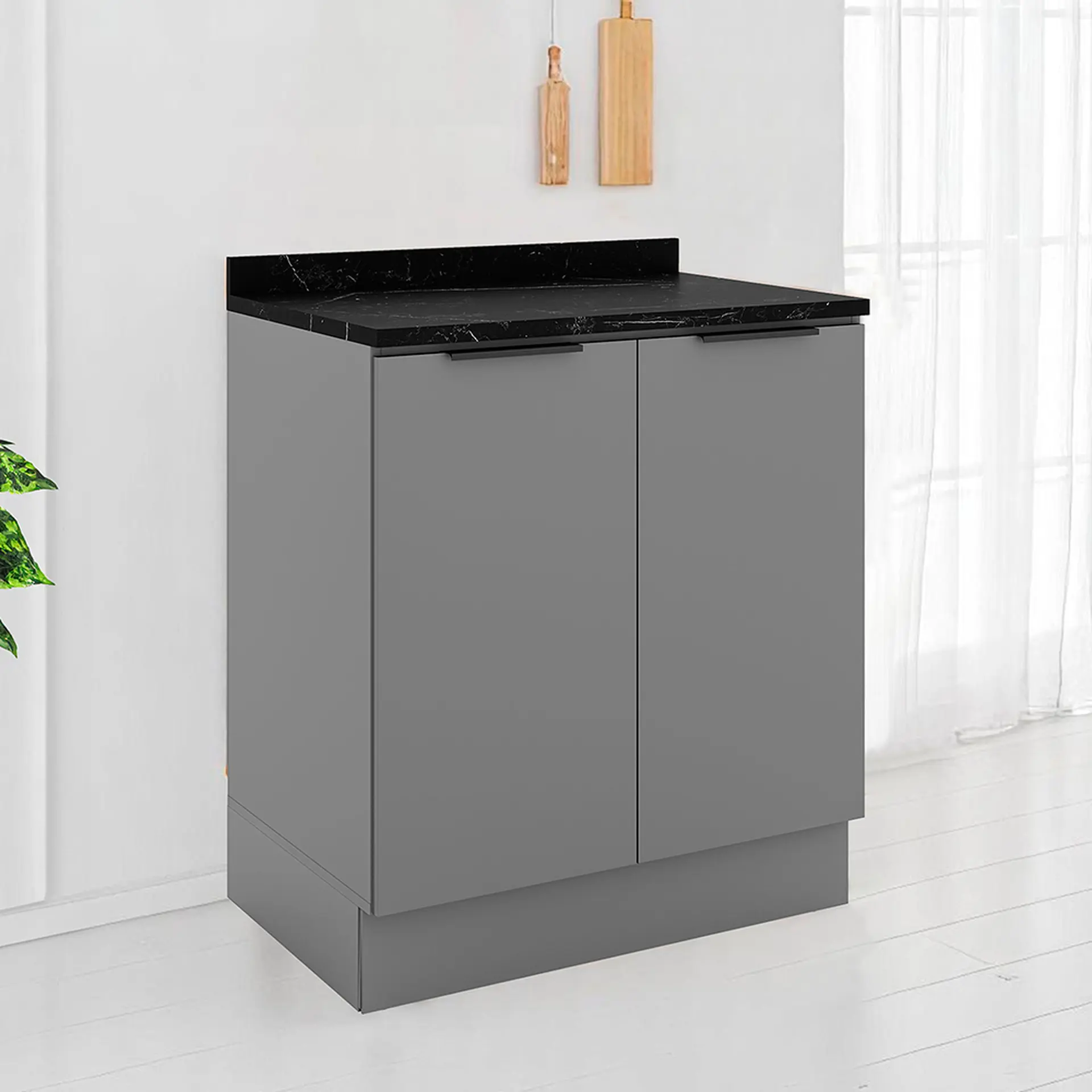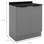Balcão com Tampo 2 Portas 80cm MDP MDF Lumina Telasul – Cinza/Lacca Cinza