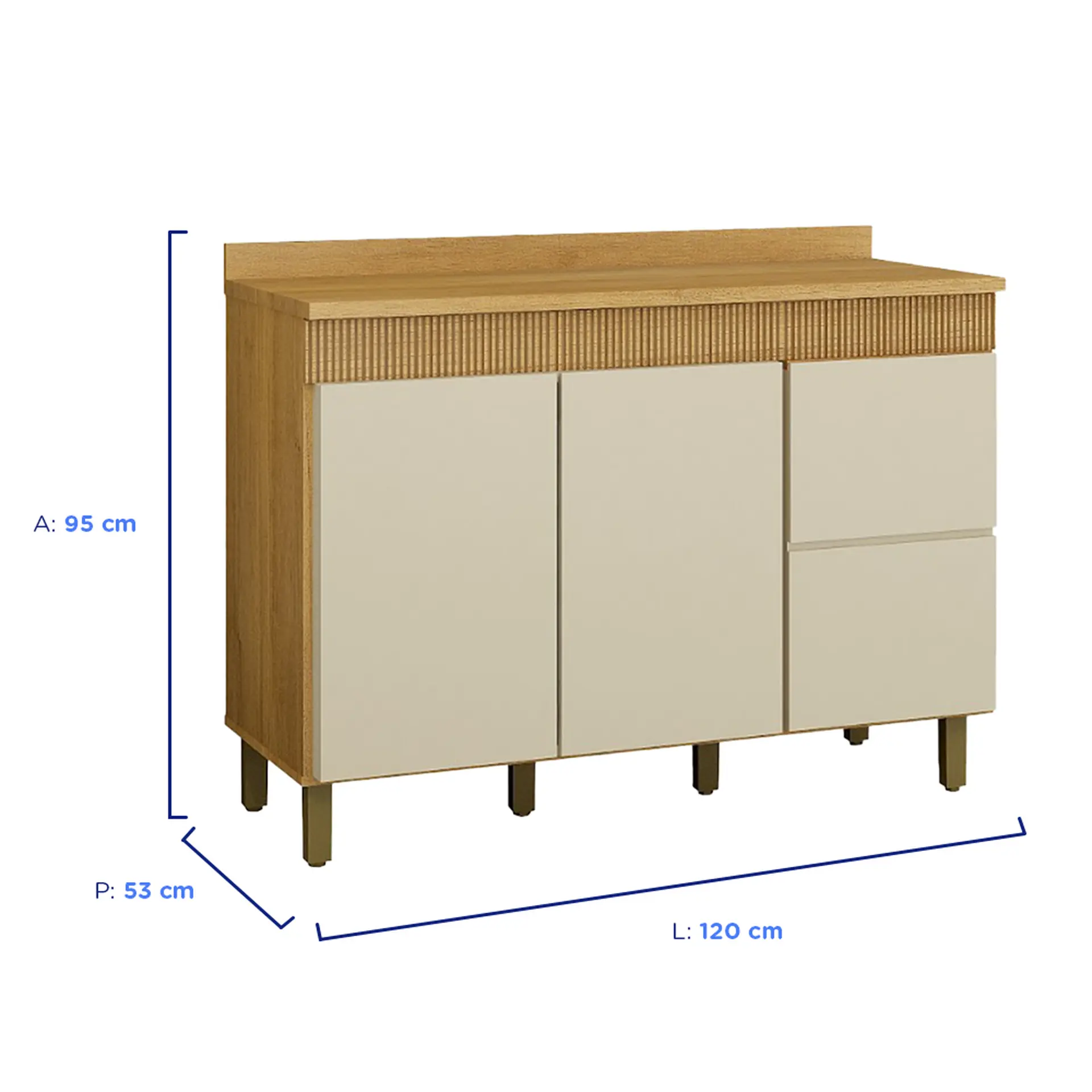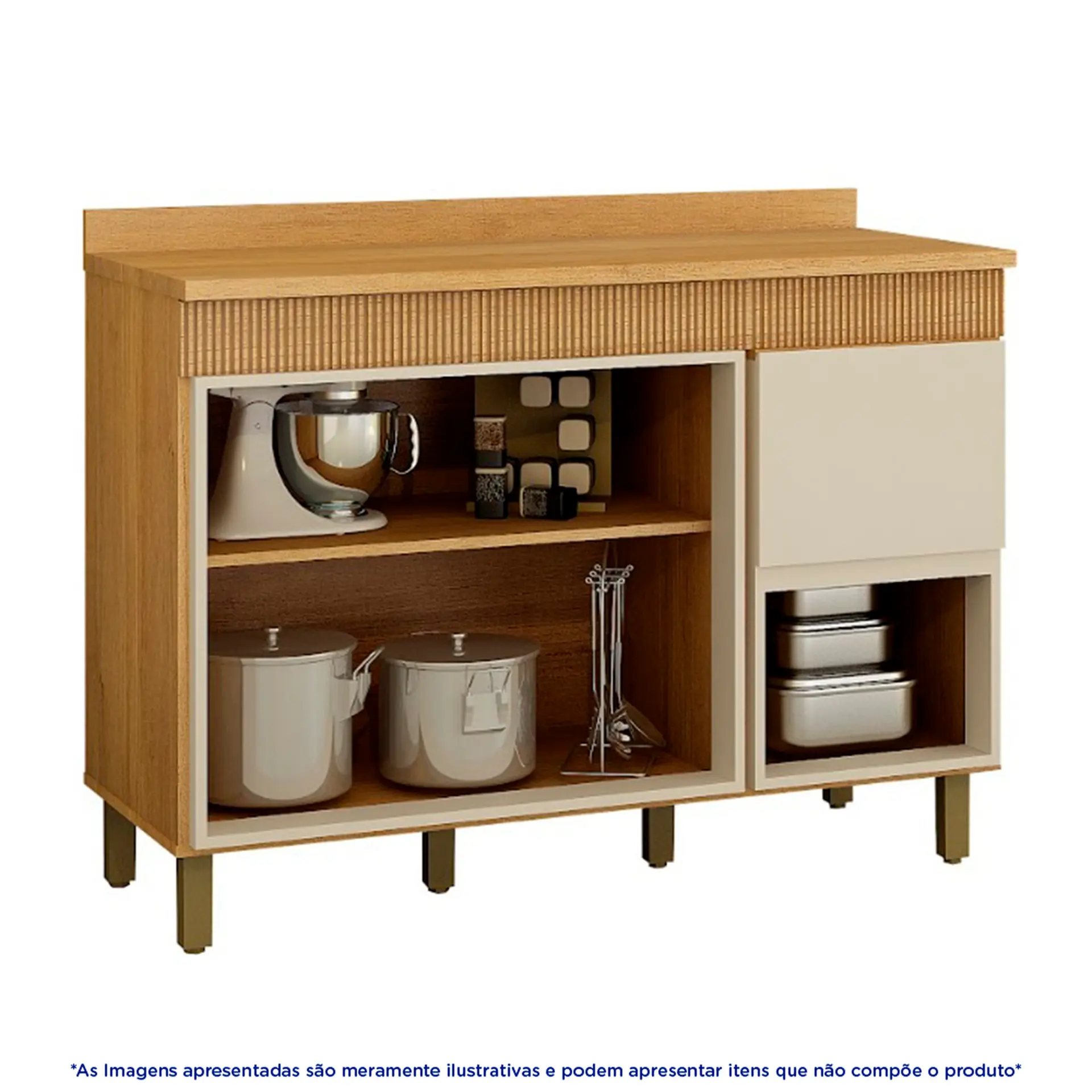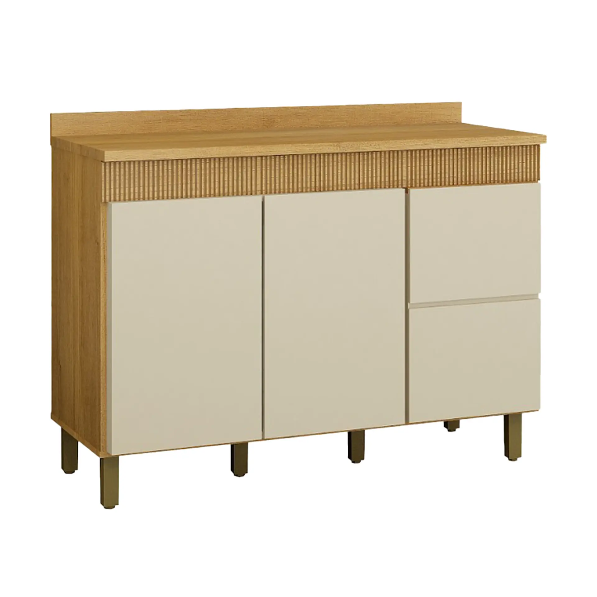 Balcão com Tampo 3 Portas 2 Prateleiras 120 cm Dakota Valdemóveis – Cinamomo/ Off white