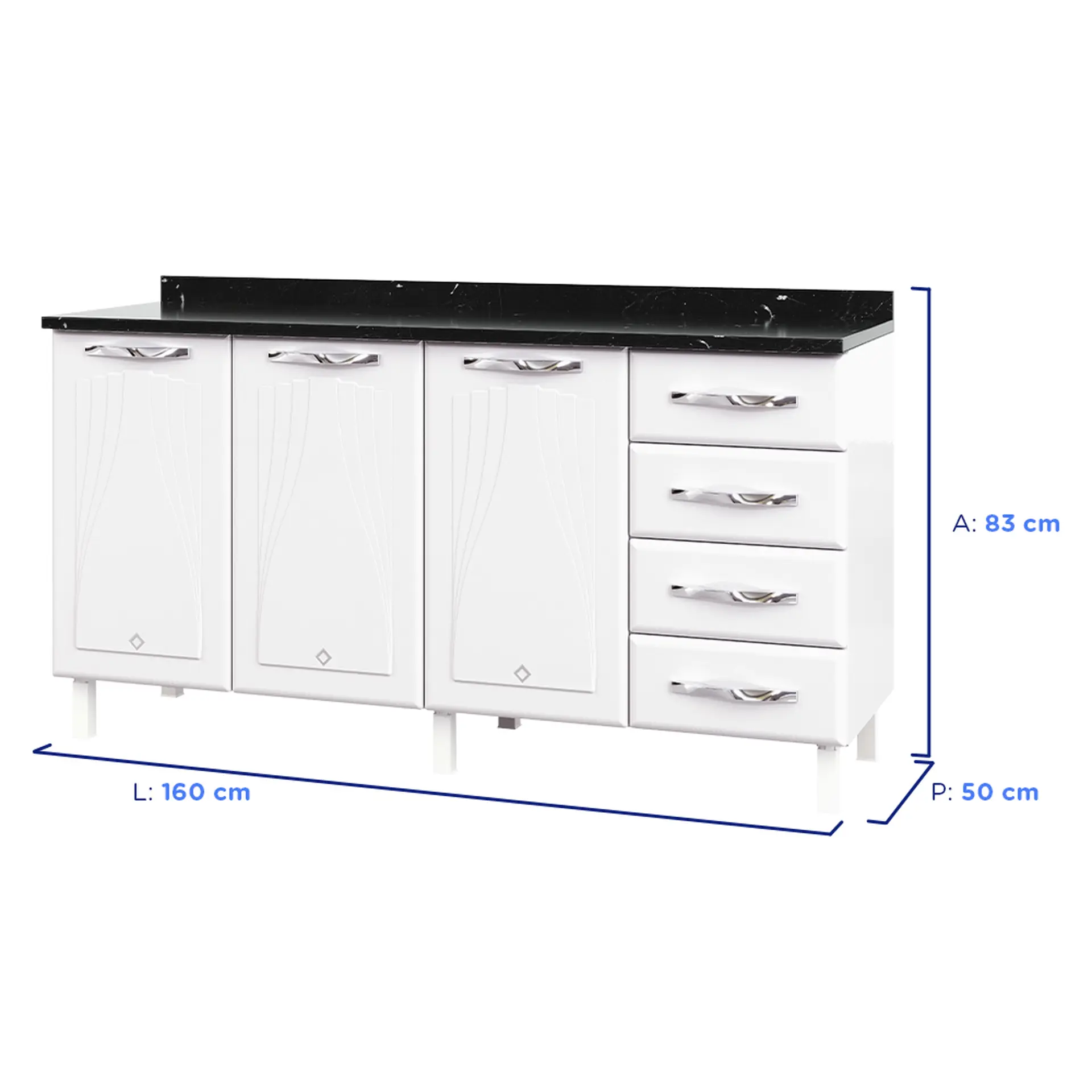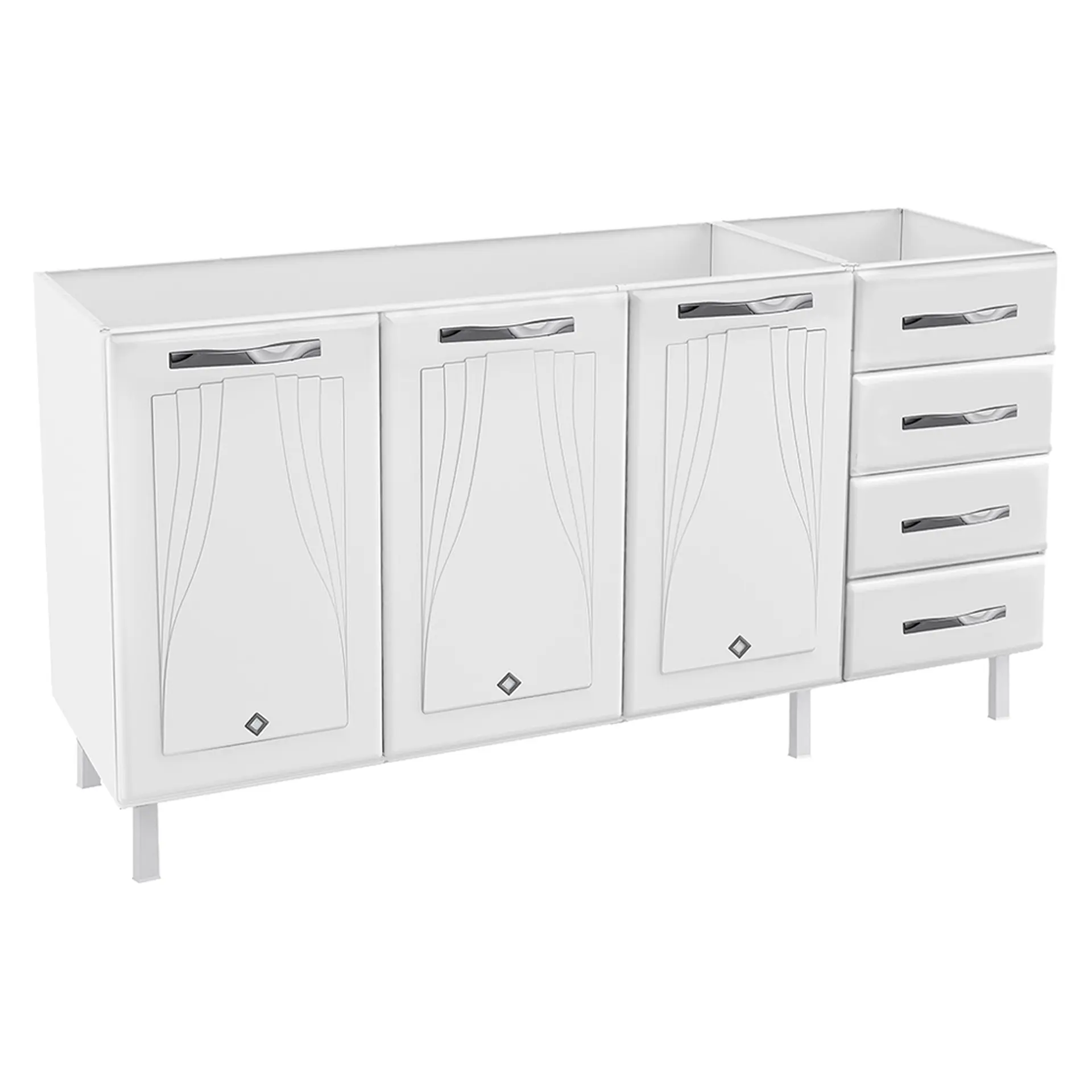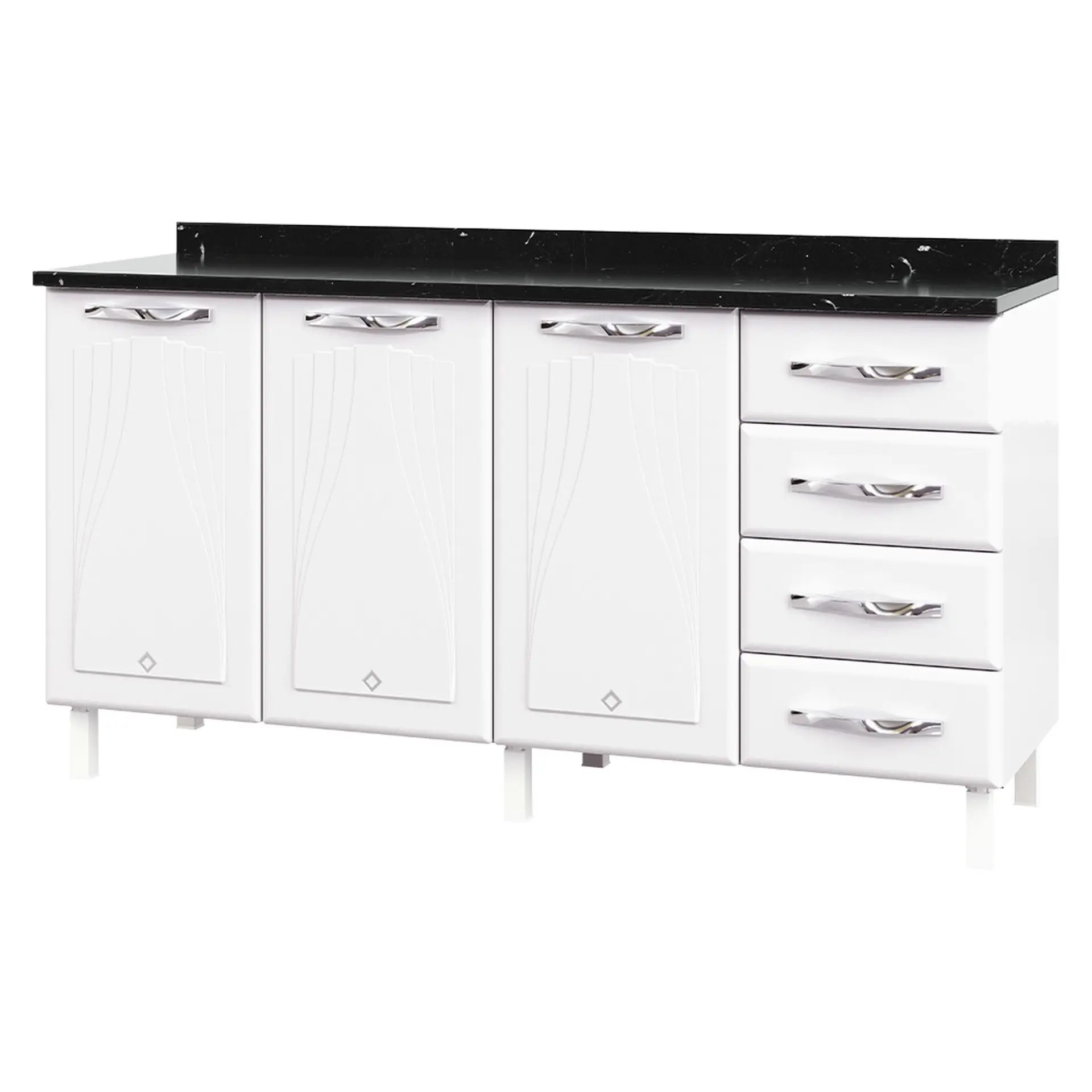 Balcão com Tampo 3 Portas 4 Gavetas 160cm Telasul Star – Branco