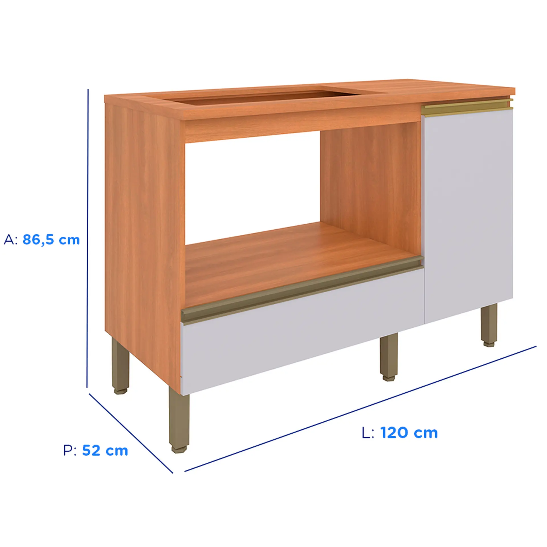 Balcão para Cooktop 1 Porta 1 Gaveta Macadamia Telasul – Freijo/Branco