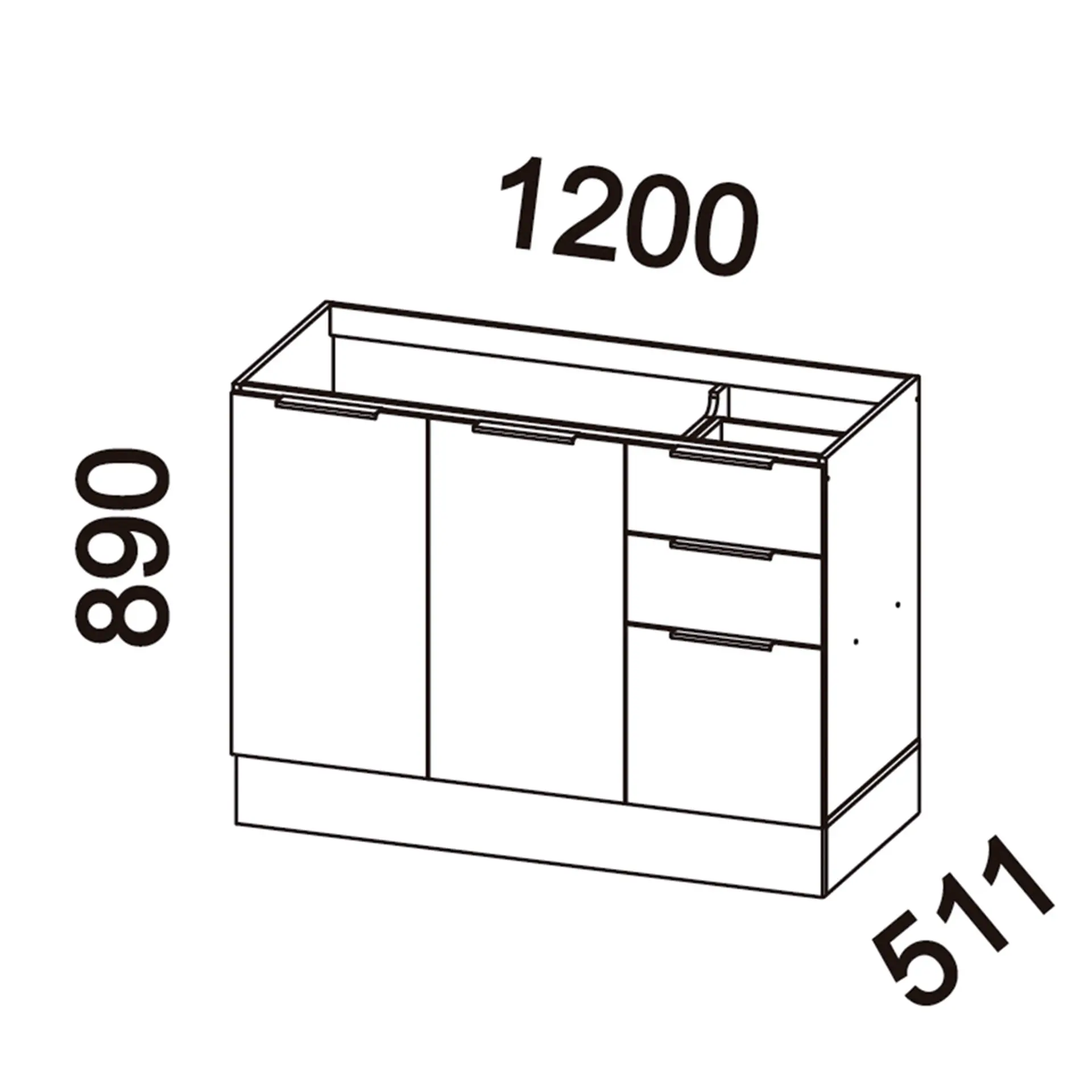 BALCÃO SEM TAMPO 2 PORTAS 3 GAVETAS 120CM MDP MDF LUMINA TELASUL