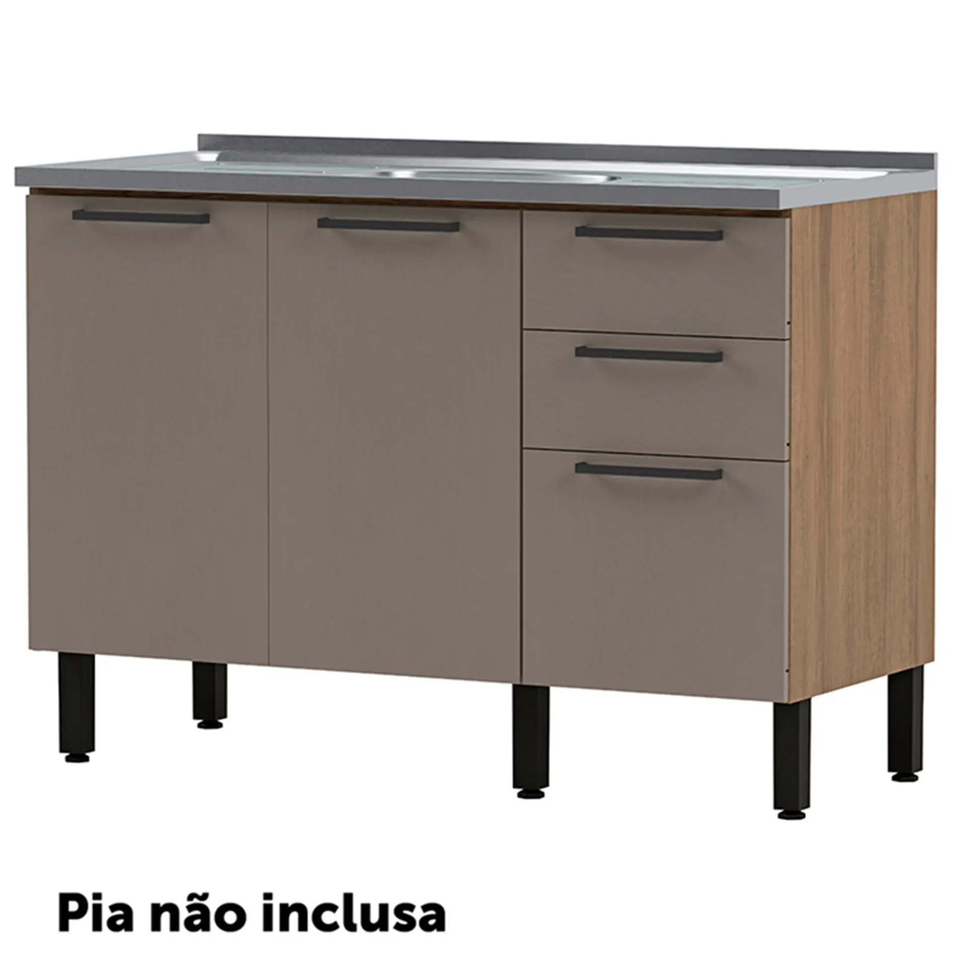 Balcão sem Tampo 2 Portas 3 Gavetas em MDP 120cm Caiena Telasul – Mel/Fume