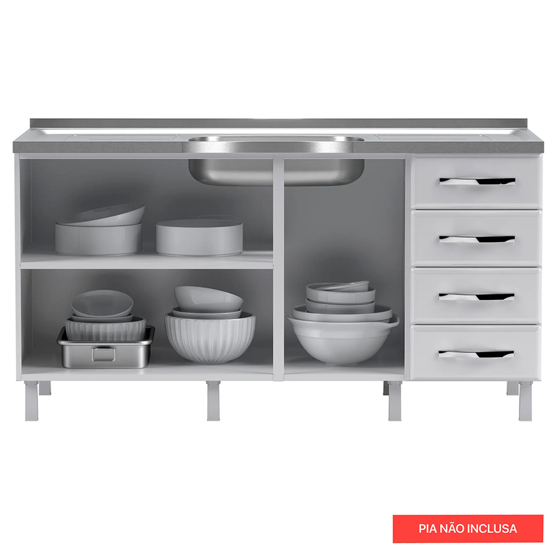 Balcão sem Tampo 3 Portas 4 Gavetas 160cm Star Telasul em Aço – Branco
