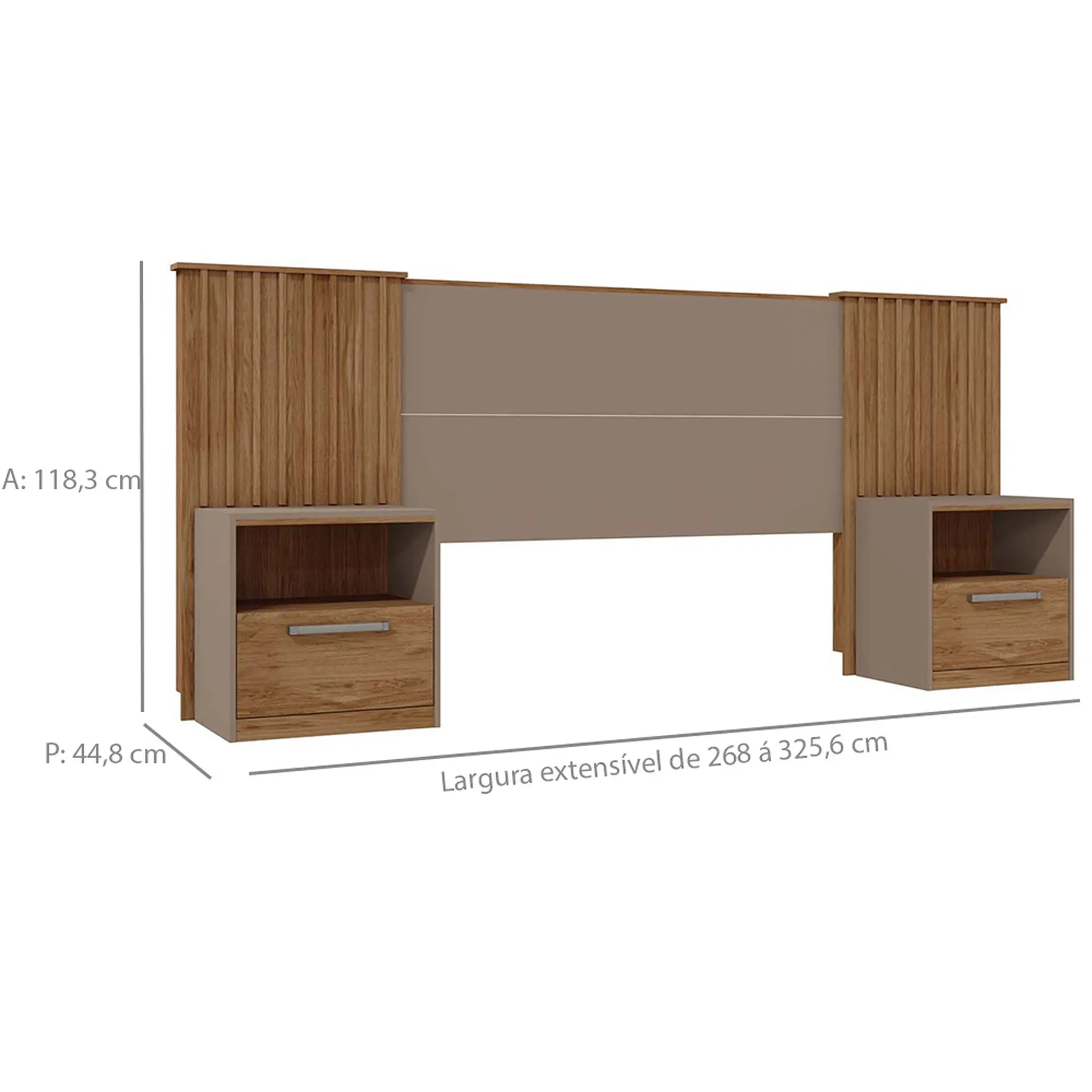 Cabeceira Casal Extensível até 325,6cm com Mesa de Cabeceira Lucius Caemmun – Buriti/Fendi