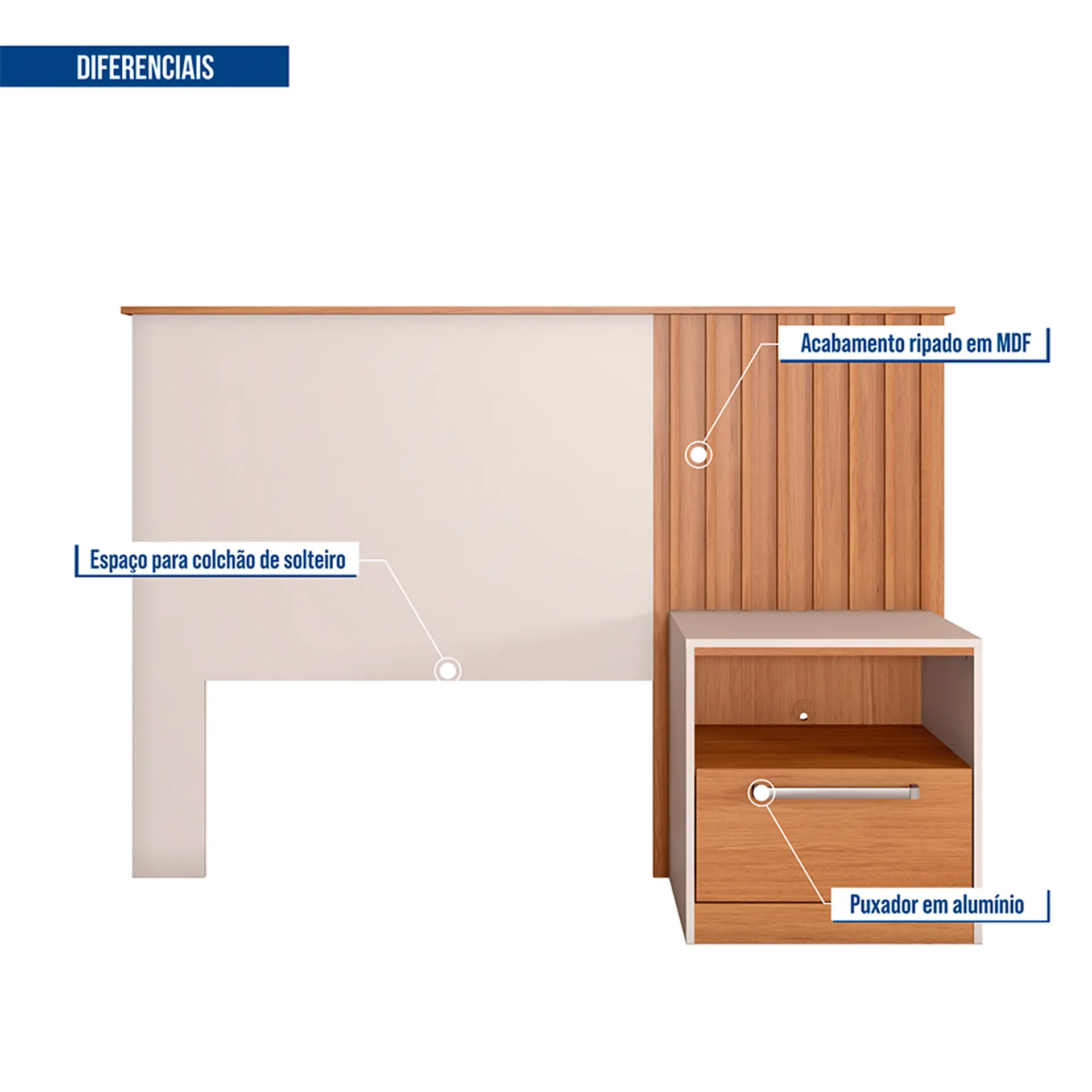 Cabeceira Solteiro com Mesa de Apoio Lucila Caemmun – Freijo/Off White