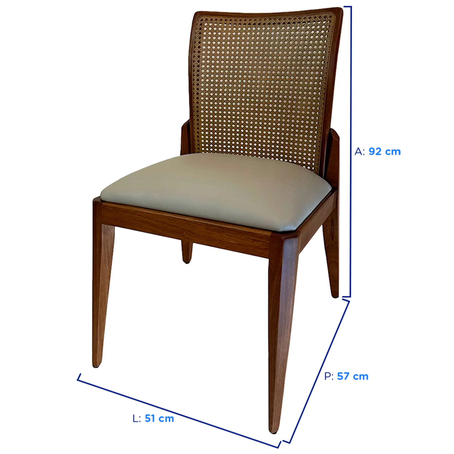 Ideal para salas de jantar, cozinhas, áreas de lazer e ambientes comerciais, a cadeira adapta-se perfeitamente a espaços que valorizam o bom gosto e a qualidade nos acabamentos. Seu visual moderno é equilibrado por elementos naturais, conferindo personalidade e versatilidade à decoração.