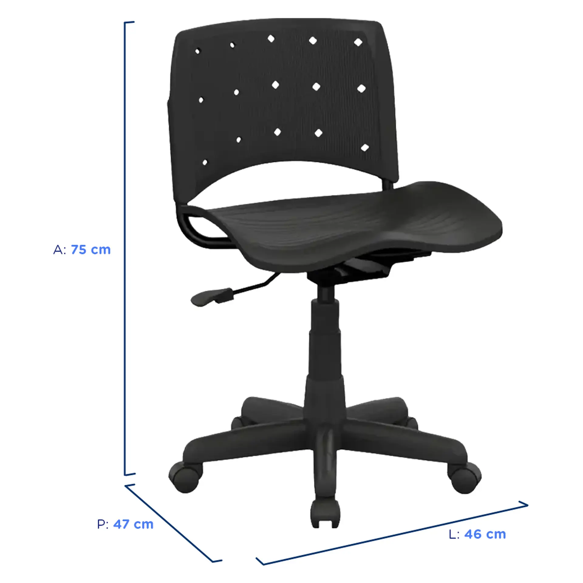 A Cadeira Giratória Ergoplax Secretária é a escolha perfeita para seu ambiente de trabalho ou de estudos. A altura do assento pode ser ajustada da maneira ideal para você através do acionamento por pistão a gás. Confira mais detalhes: