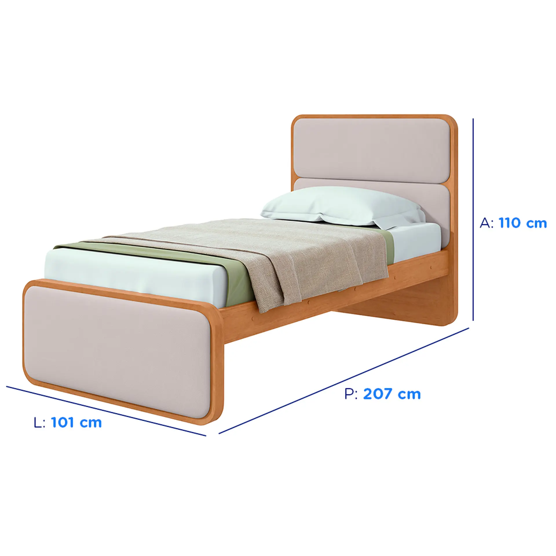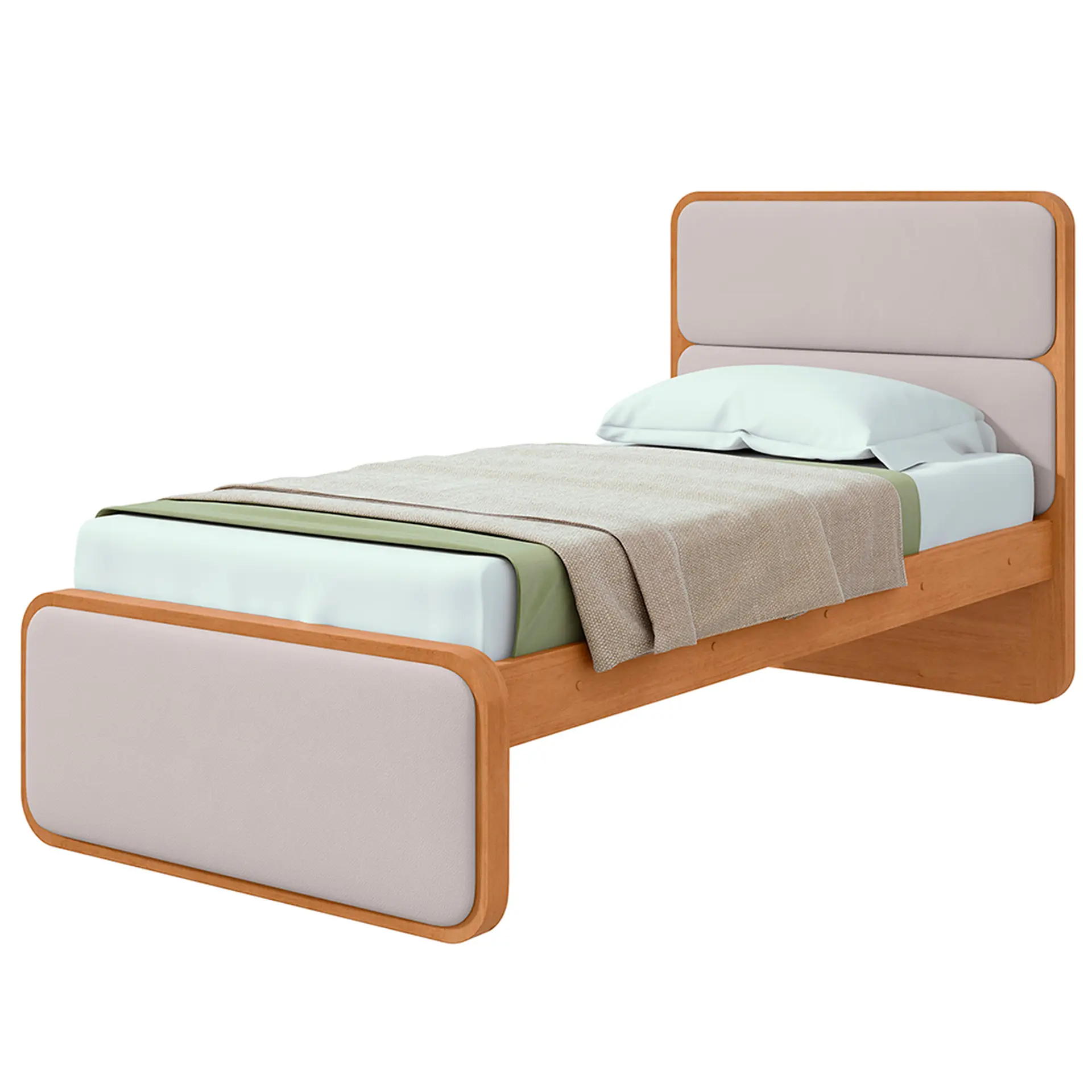 Cama de Solteiro com Cabeceira Estofada MDP MDF Lopas Loop – Amendoa Clean/Bege