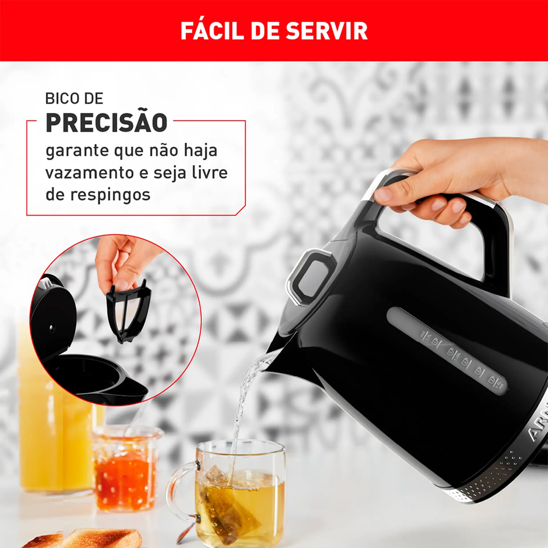 , a Chaleira Elétrica Arno Soleil aquece a água de forma