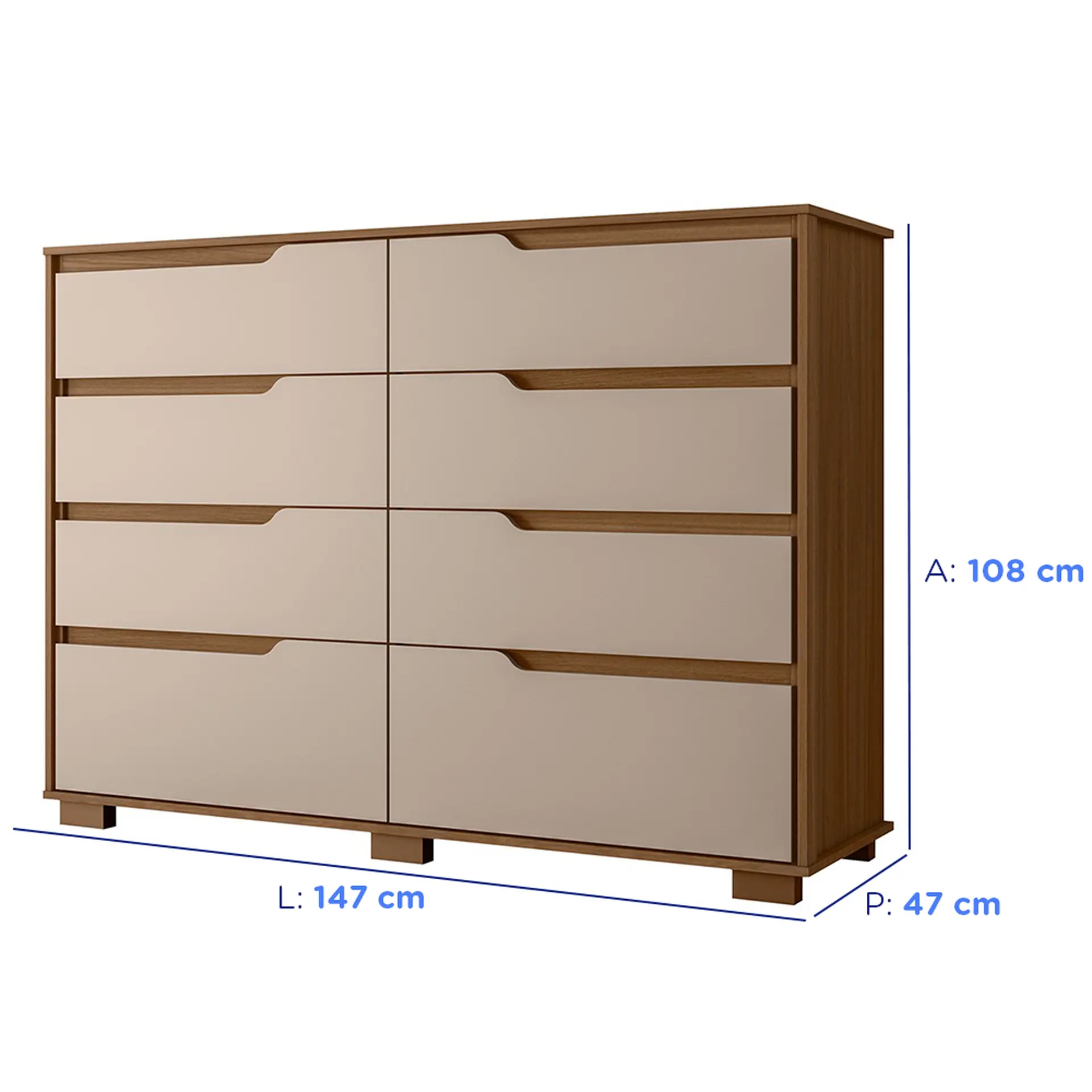 Cômoda 8 Gavetas MDP Corrediças Telescópicas Georgia Moval – Carvalho/Fendi