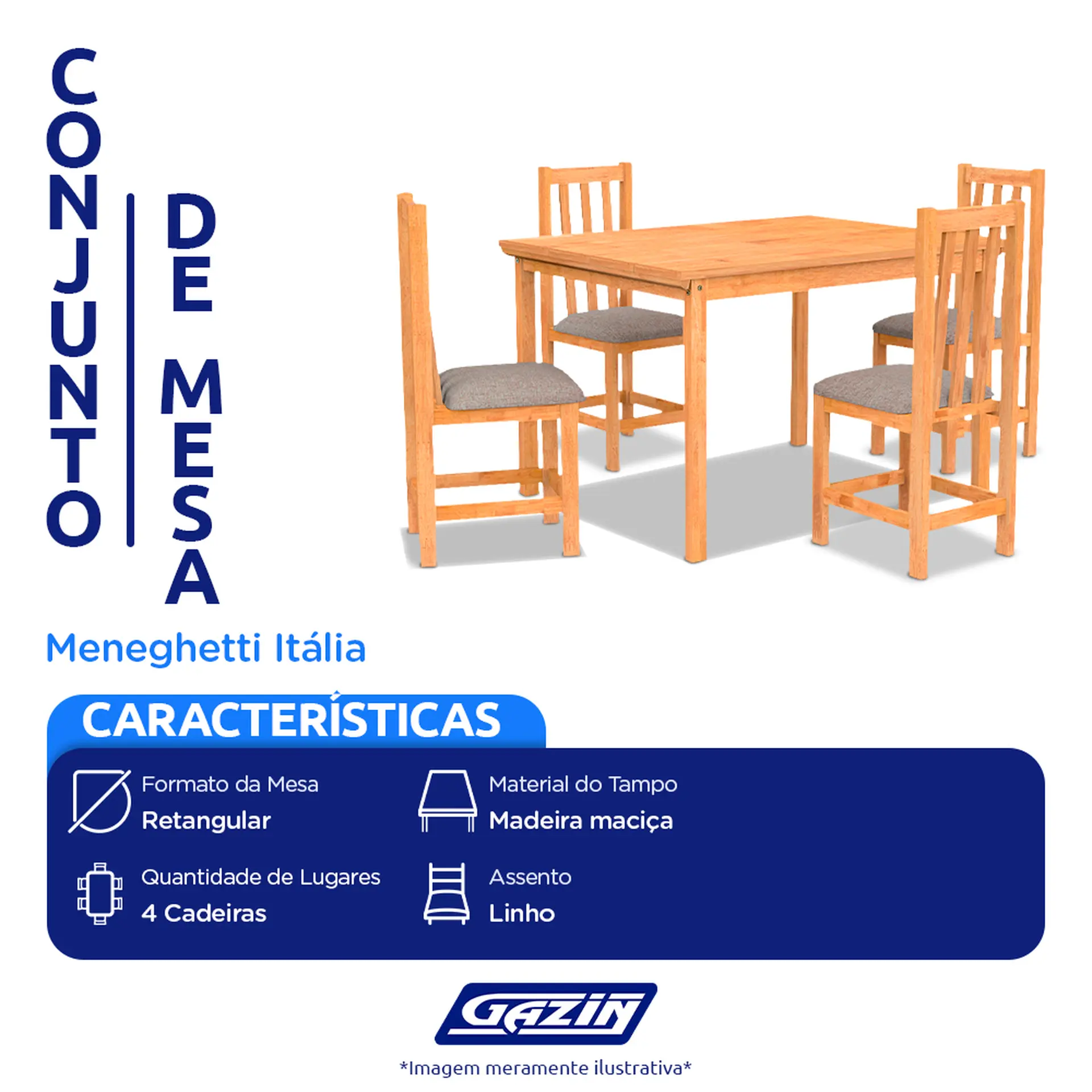 Informações adicionais Produtos Relacionados Conjunto de Mesa 4 Cadeiras 100% Madeira Maciça Itália Meneghetti – Mel/Cacau Cód.