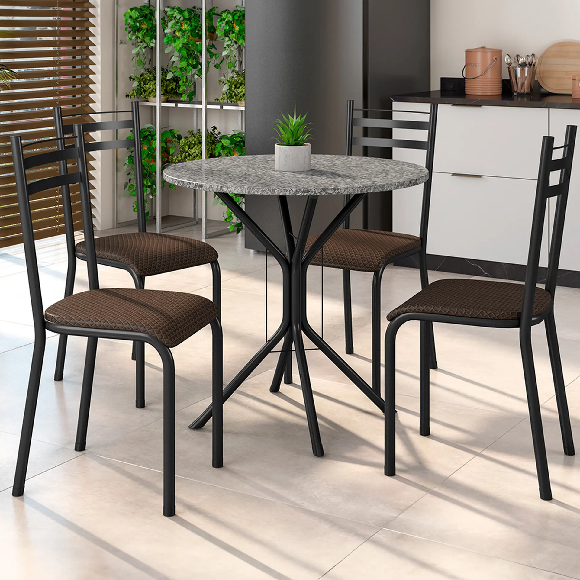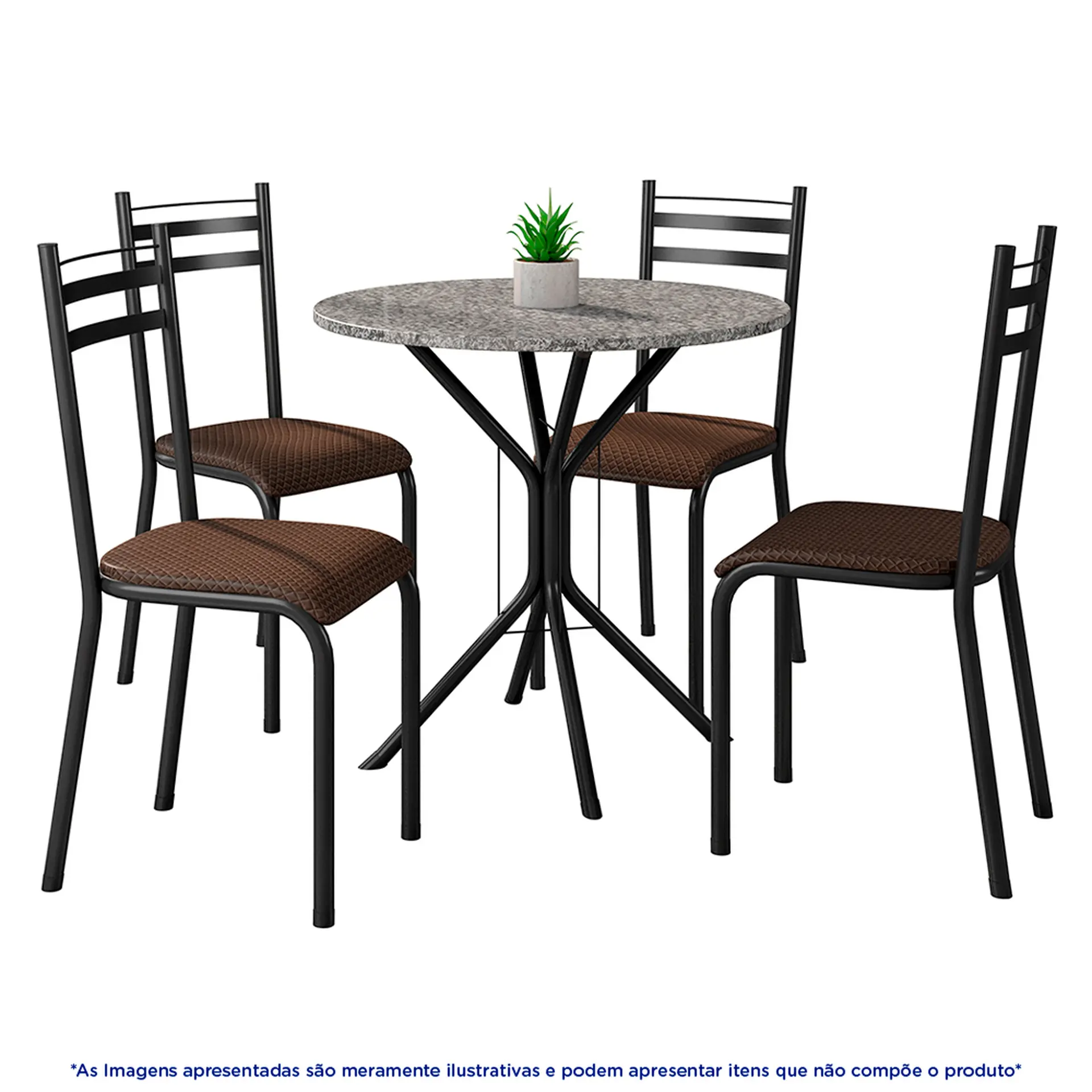 Início Moveis Conjunto de Mesa 4 Cadeiras Tampo Granito Lyon Fabone – Preto Fosco/Café