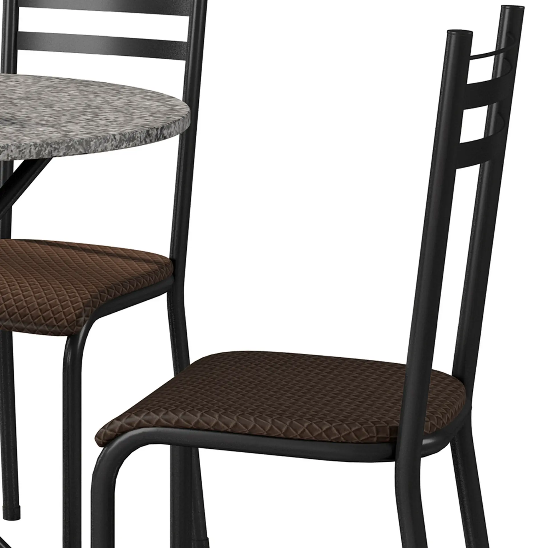 Conjunto de Mesa 4 Cadeiras Tampo Granito Lyon Fabone – Preto Fosco/Café