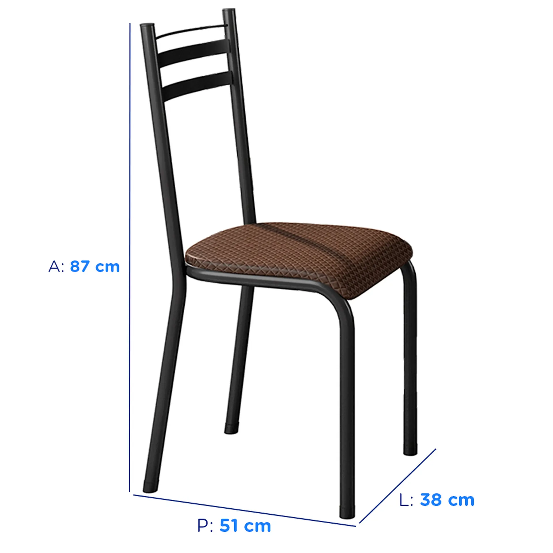 Informações adicionais Produtos Relacionados 2 cores Conjunto de Mesa 4 Cadeiras Tampo Granito Lyon Fabone – Preto Fosco/Café Cód.