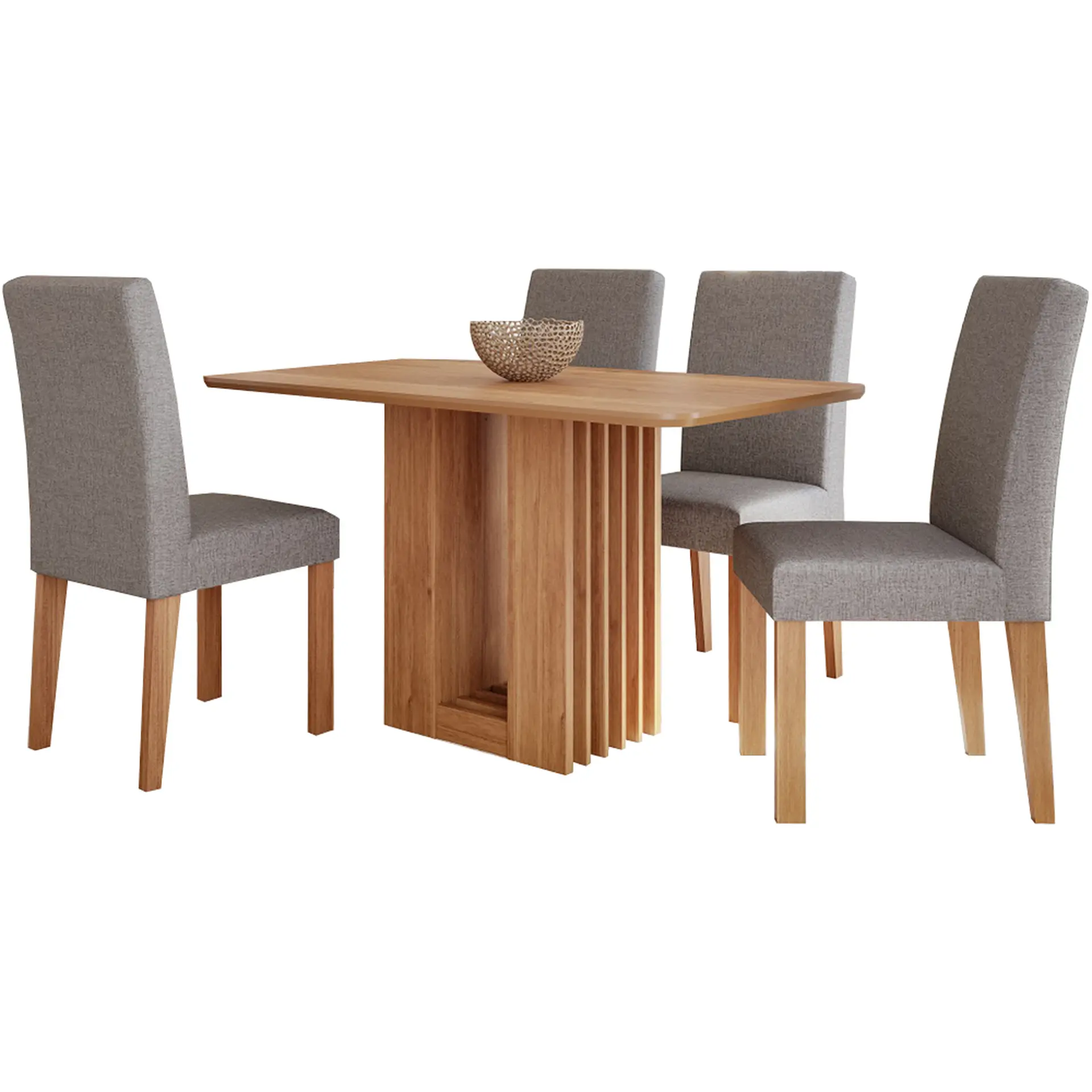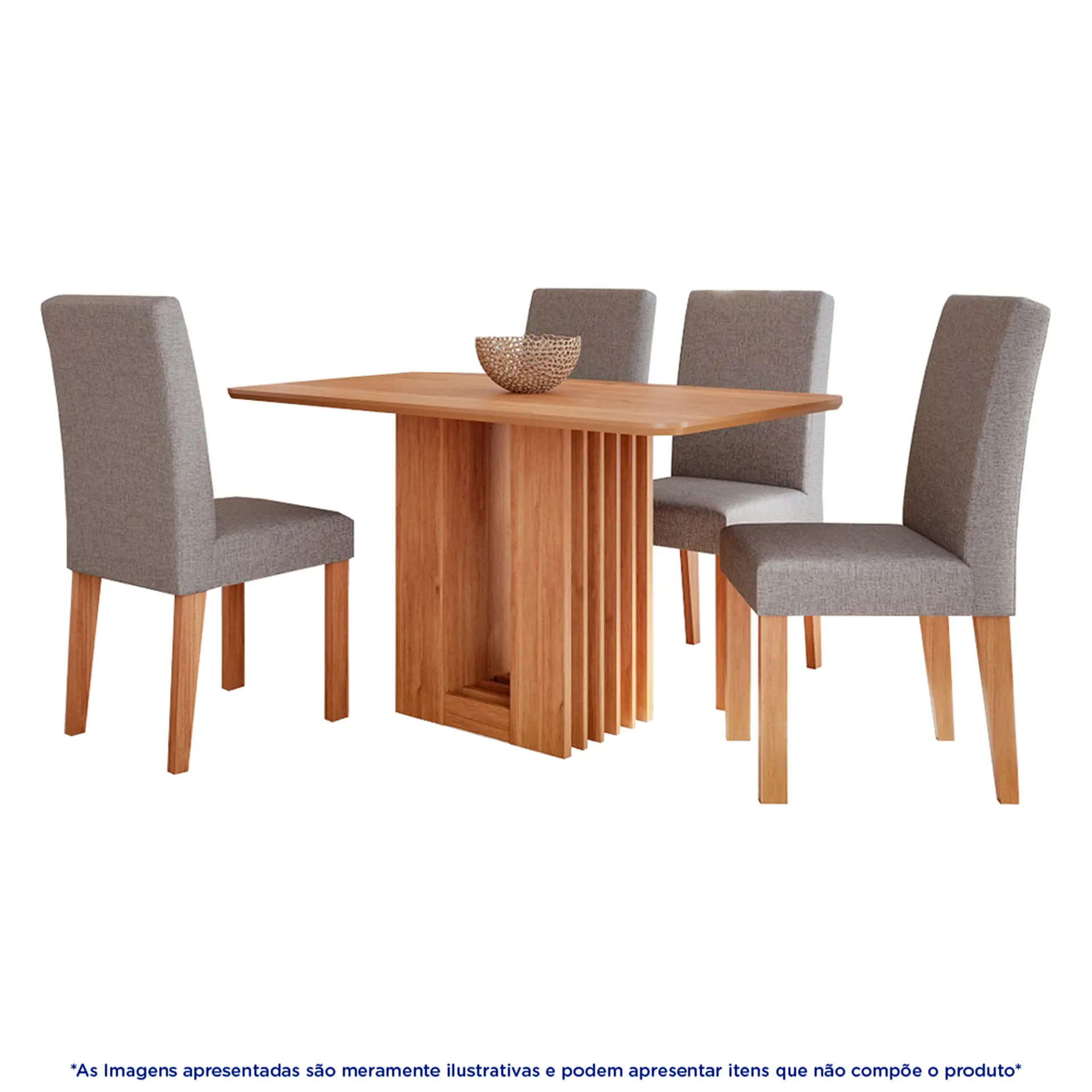 Conjunto de mesa 4 Cadeiras Tampo MDF com Assento Estofado Cimol – Linho Cinza/Grafite
