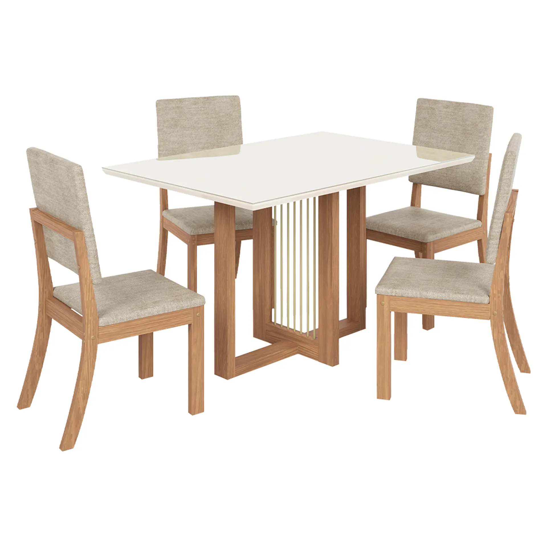 Conjunto de Mesa 4 Cadeiras Tampo MDF com Assento Estofado Natalí Henn – Nature/Off white/Creme