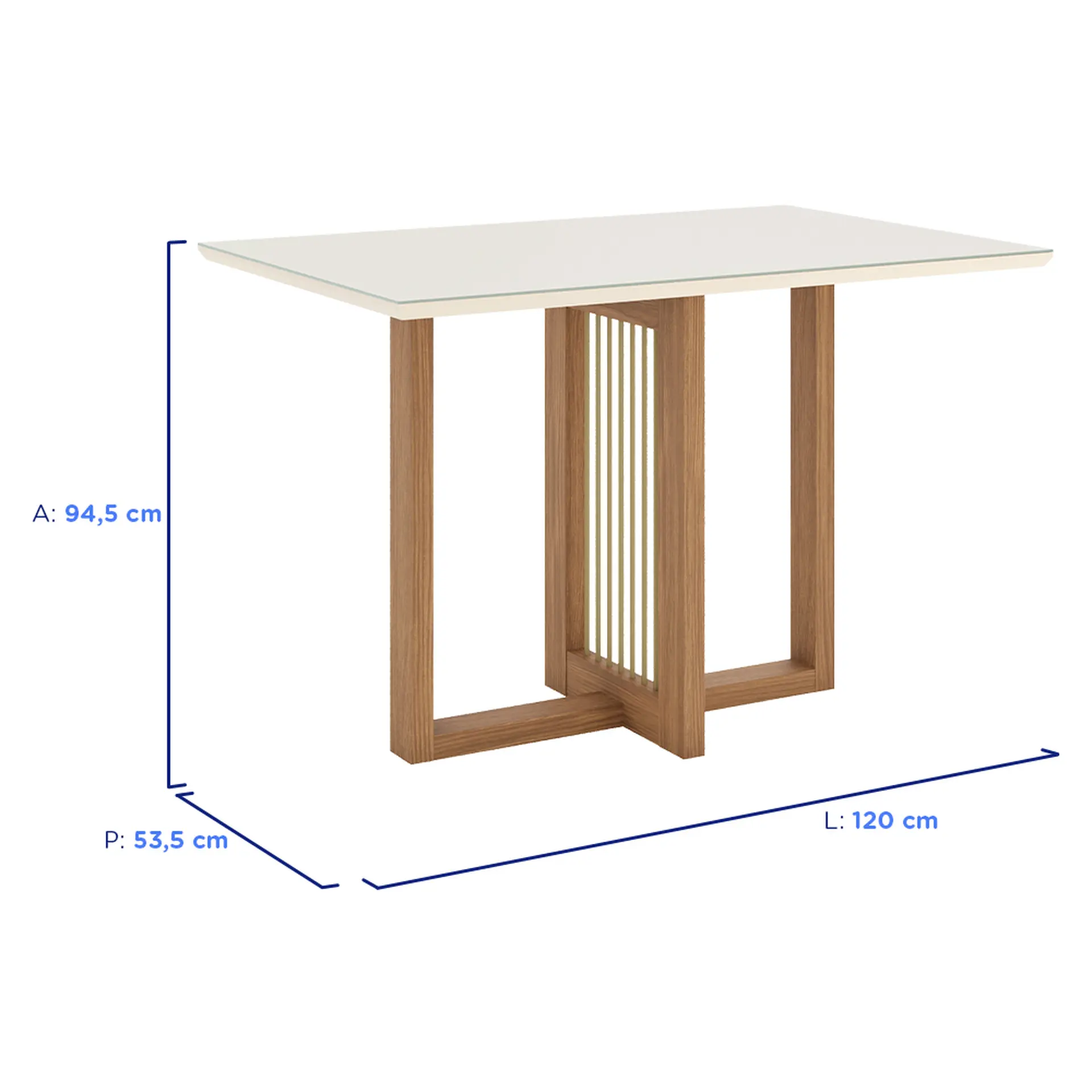 O tampo em MDF e vidro conta com pintura UV/PU, que protege contra desgaste, riscos e umidade, mantendo o aspecto de novo por muito mais tempo. Além disso, a mesa possui estrutura firme e estável, garantindo durabilidade e praticidade no uso diário.